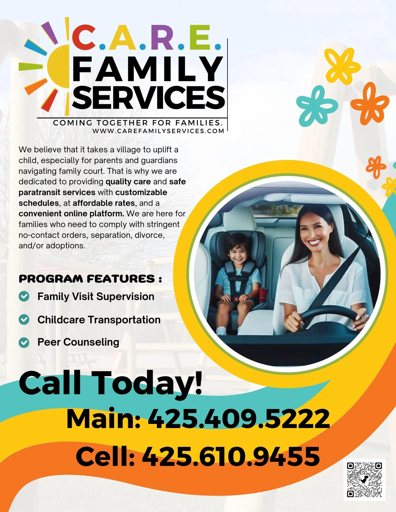 Have confidence that your children are being transported safely to and from home, school, daycare, recreational activities, and family visitations by a professional Family Time Visit Supervisor who has been trained in defensive driving, childcare and behavioral health supports, and meets all state qualifications. Our Visit Supervisors will become like ‘family’ as they provide consistency for youth and support caregivers as they juggle their busy household schedules.